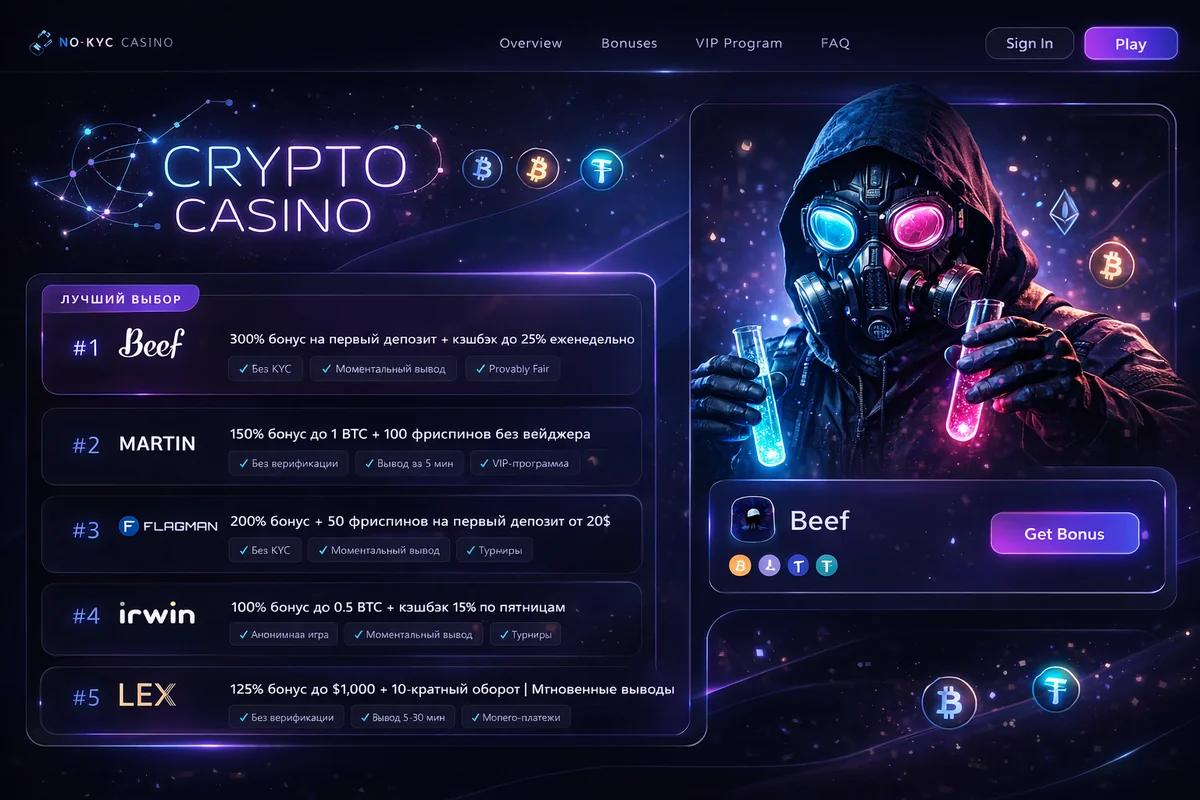 Крипто казино без верификации — ТОП онлайн-казино без KYC в 2026 году